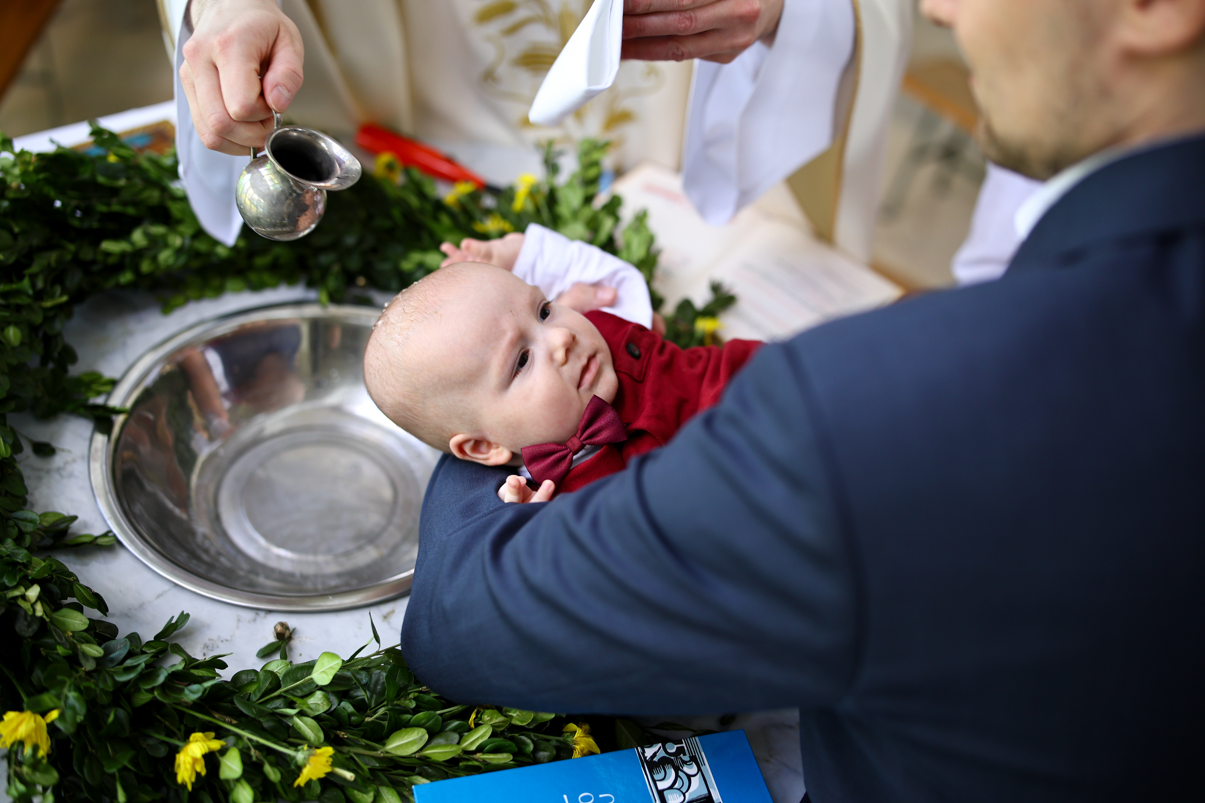 - Ceremonia w kościele – dyskretne uchwycenie najważniejszych momentów: sakramentu chrztu, emocji rodziców i chrzestnych.